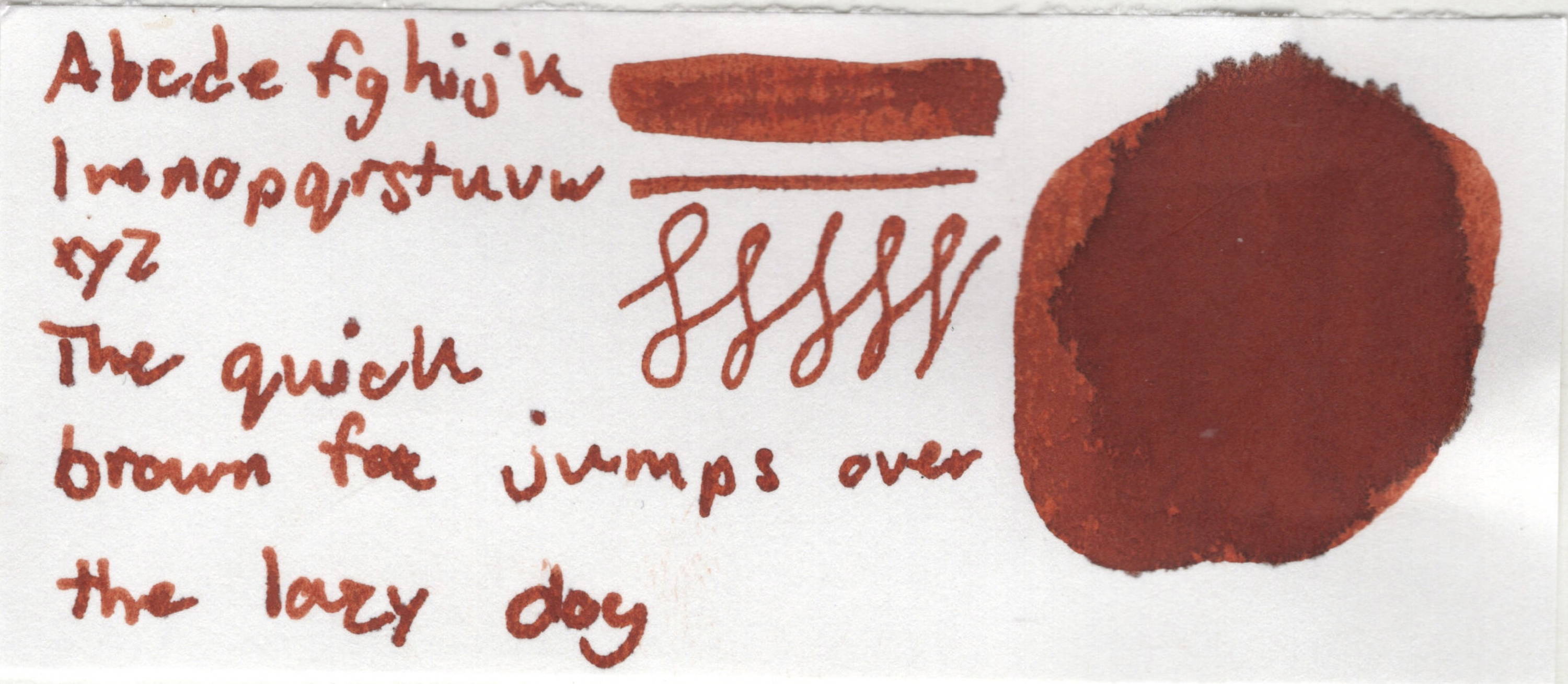 This is among the different paper’s that had minimal sheening. However, it did have a beautiful spectrum of shading from fairly pale and undersaturated to overly saturated and fantastically darkish. Within the writing, all the things dried to the identical crimson/brown tone however had no feathering to talk of, a difficulty typically with orange & brown inks on MD paper. This swatch someway reads as each darkish crimson and orange; it would not match with what I think about Historic Copper would appear like however I don’t thoughts it.