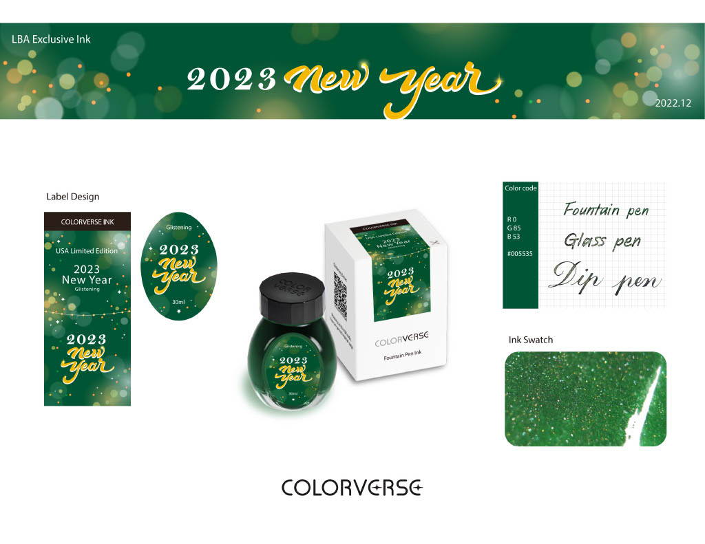 Kicking off this checklist is an ink that celebrated the New Yr 2023 with a lot optimism and glitz. Made solely for Luxurious Manufacturers of America (US distributor for Colorverse Ink) the “2023 New Yr” is an excellent inexperienced that shimmers with silver and gold particles.