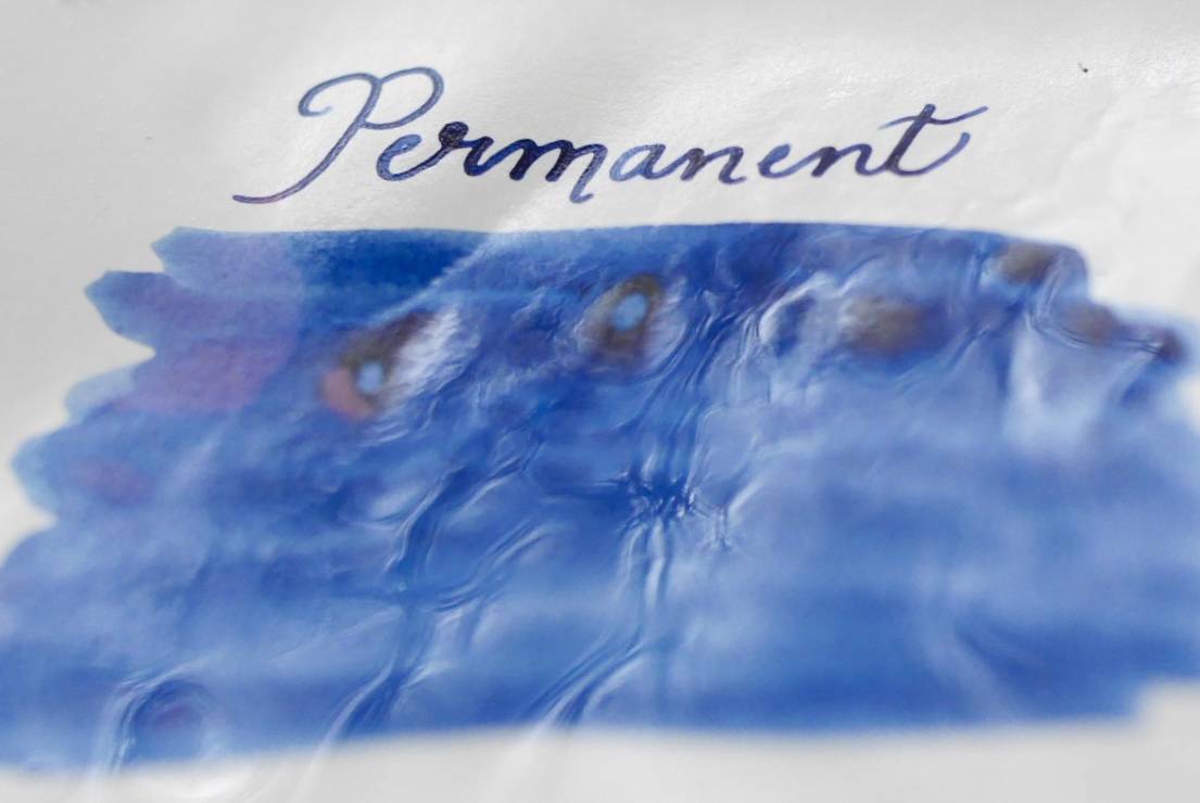 This ink has a deep, mysterious blue that has a haunting fringe of metallic blood-red sheen.